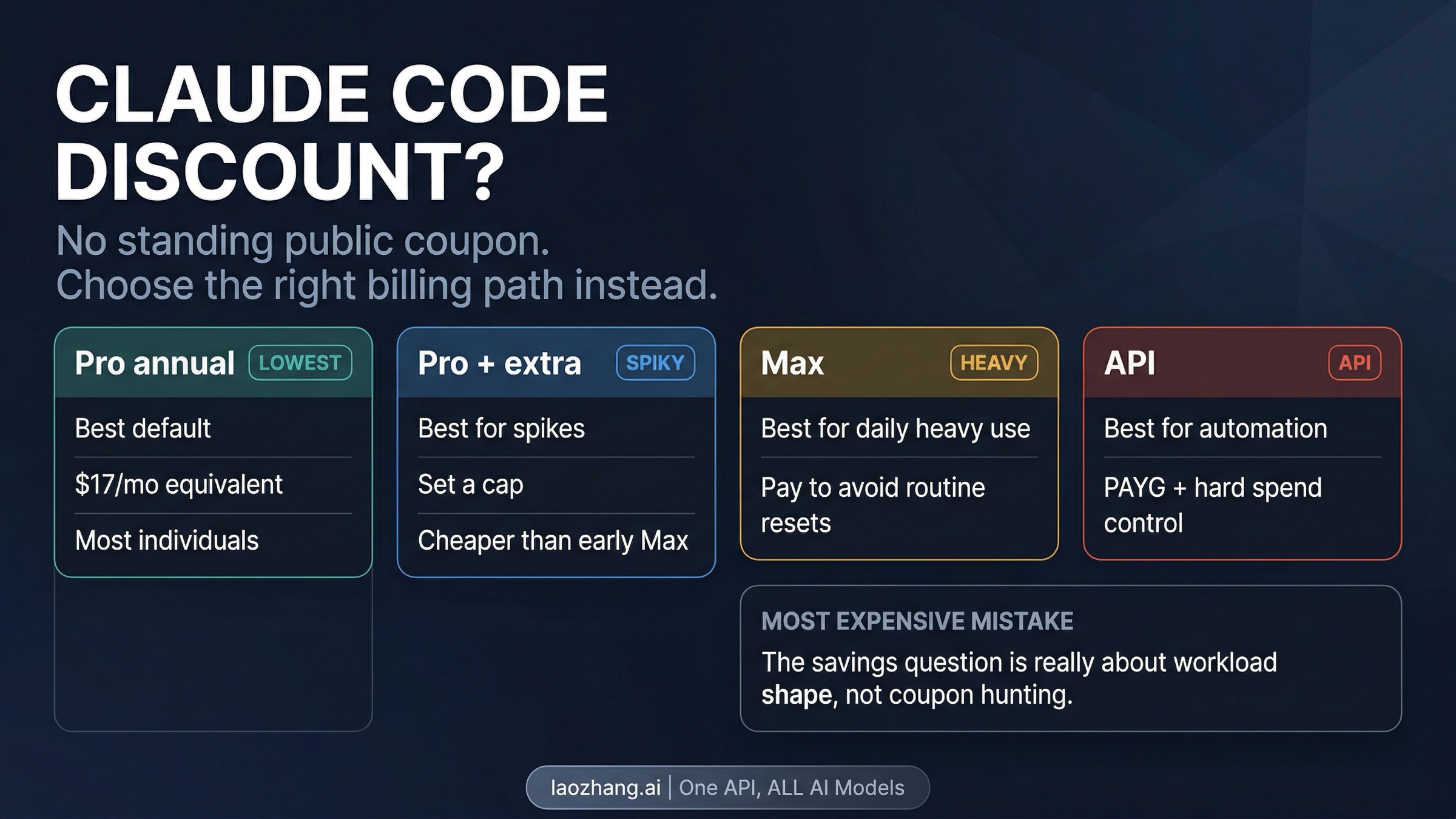 Claude Code is not unusually confusing because the prices are hidden. It is confusing because people collapse several different buying problems into one question. Once you separate coupon expectations from billing reality, the cheapest path is usually clear: start with the lowest official route that matches your actual workload, and do not pay for the wrong system by accident.