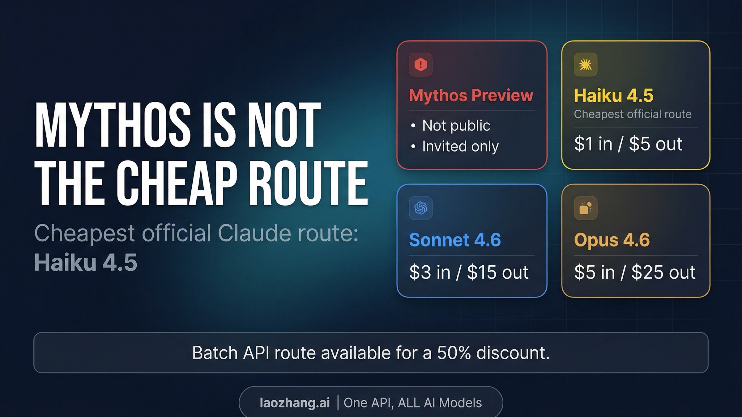 | Is Claude Mythos Preview the cheapest Claude API route I can buy today? | No | Anthropic still treats Mythos as an invitation-only preview rather than a public self-serve route. |