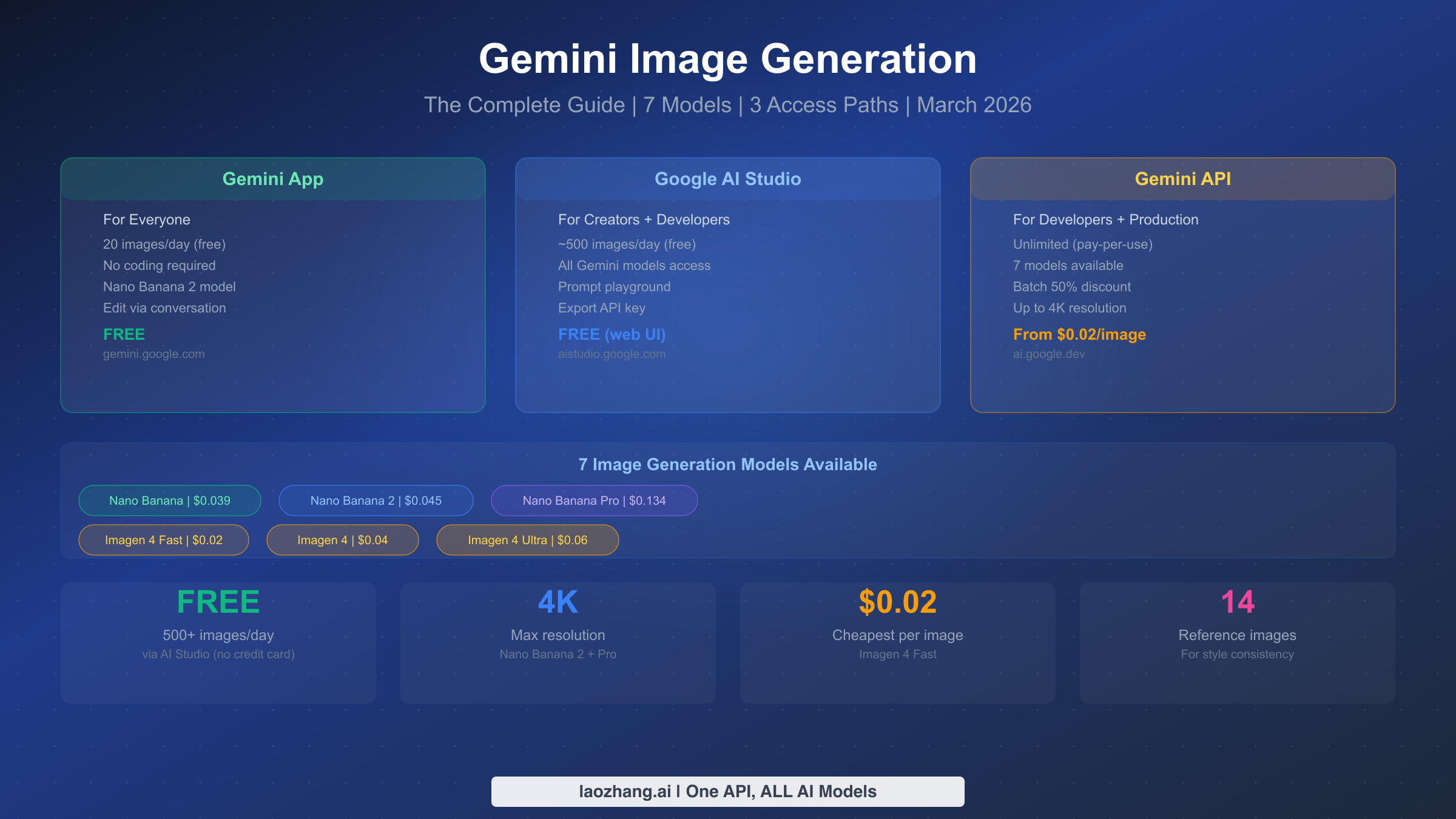 Google's Gemini platform has quietly become one of the most powerful and cost-effective AI image generation ecosystems available in 2026. With seven distinct models spanning two product families — the conversational Gemini Native series (codenamed "Nano Banana") and the dedicated Imagen 4 family — plus three completely different access paths ranging from free consumer apps to production APIs, the landscape is rich but genuinely confusing for newcomers. This guide cuts through that confusion with current data verified against Google's official documentation as of March 2026, covering every model, every pricing tier, and every access method in one place.