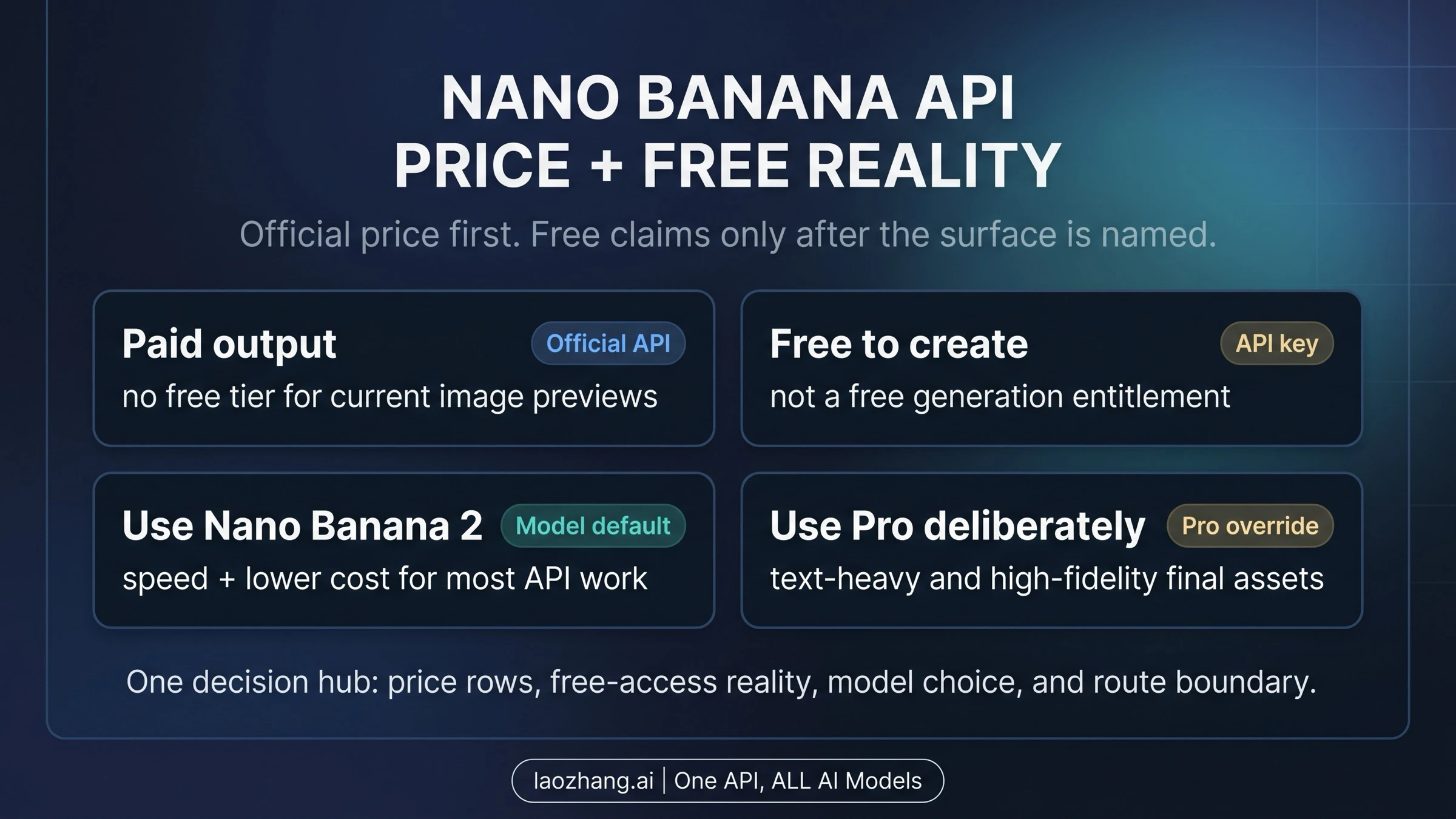 Use the dedicated free API key reality guide when the question is credential setup versus paid output. Use the Nano Banana 2 online free guide when the real job is consumer access rather than developer API billing.
