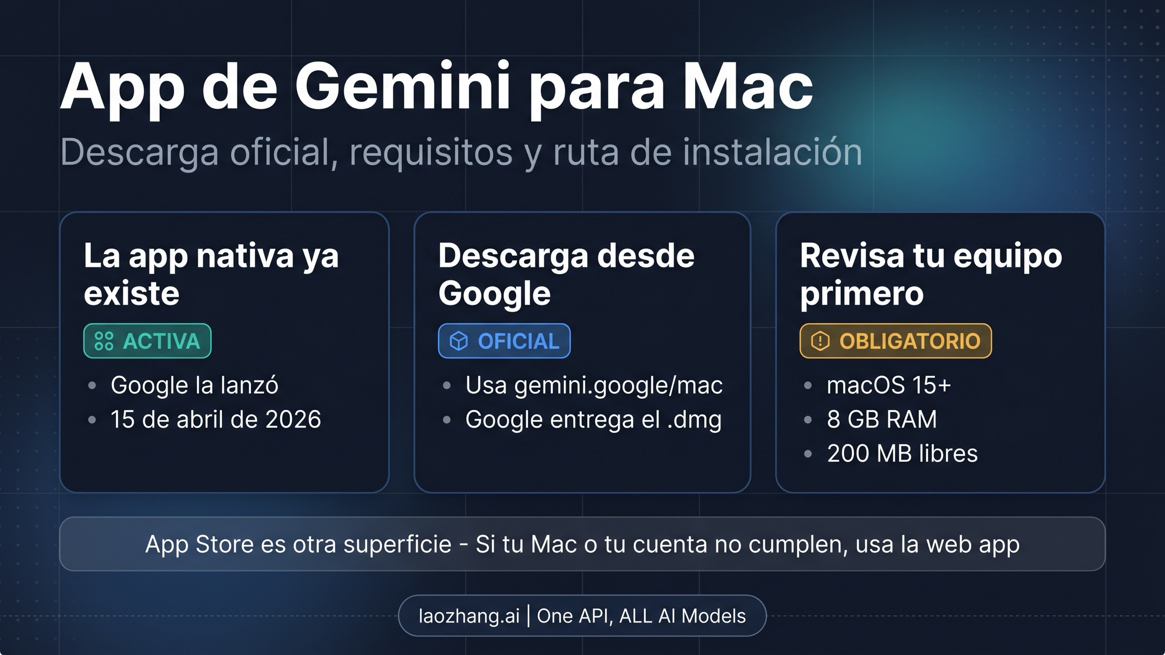 | ¿Ya existe una app nativa de Gemini para Mac? | Sí. Google la lanzó el 15 de abril de 2026. |