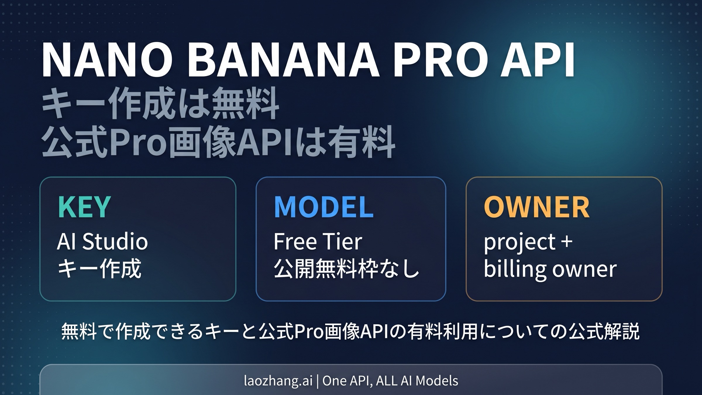 はい。Gemini API keys は引き続き AI Studio で作成されます。ですが、そのこと自体は公式 Pro image usage が無料だという意味ではありません。