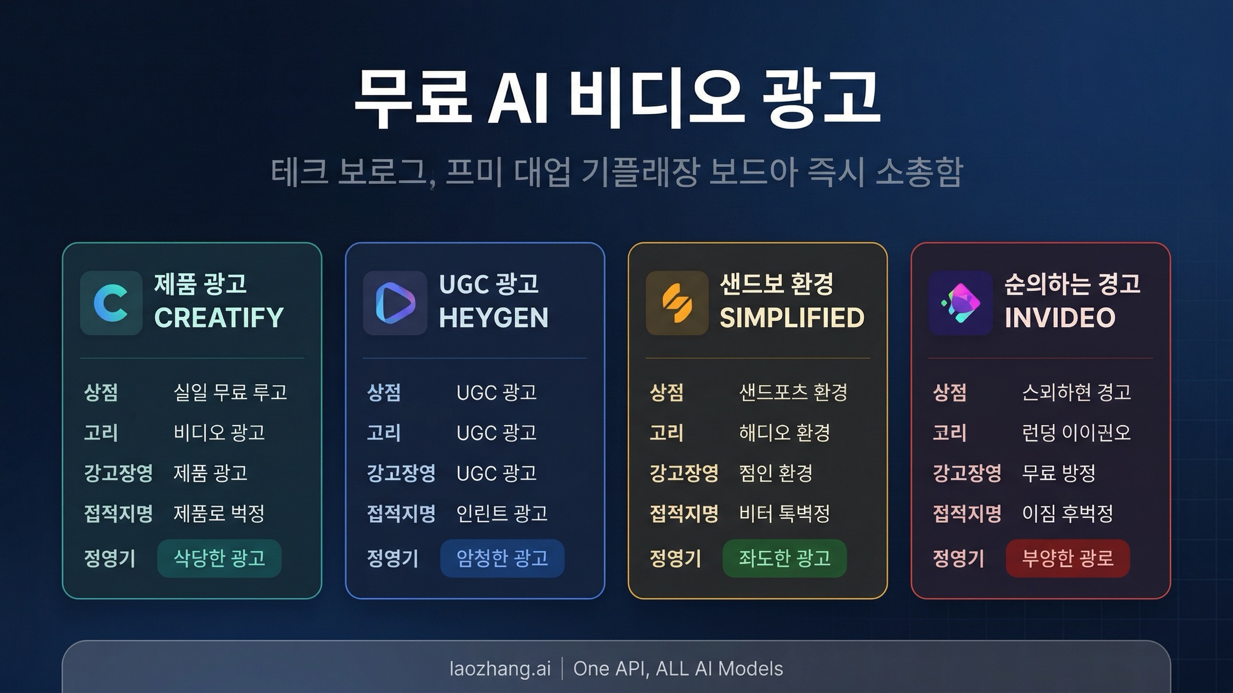지금은 Creatify 가 가장 자연스럽습니다. 공식 surfaces를 조합했을 때 무료 경계가 가장 읽기 쉽기 때문입니다.