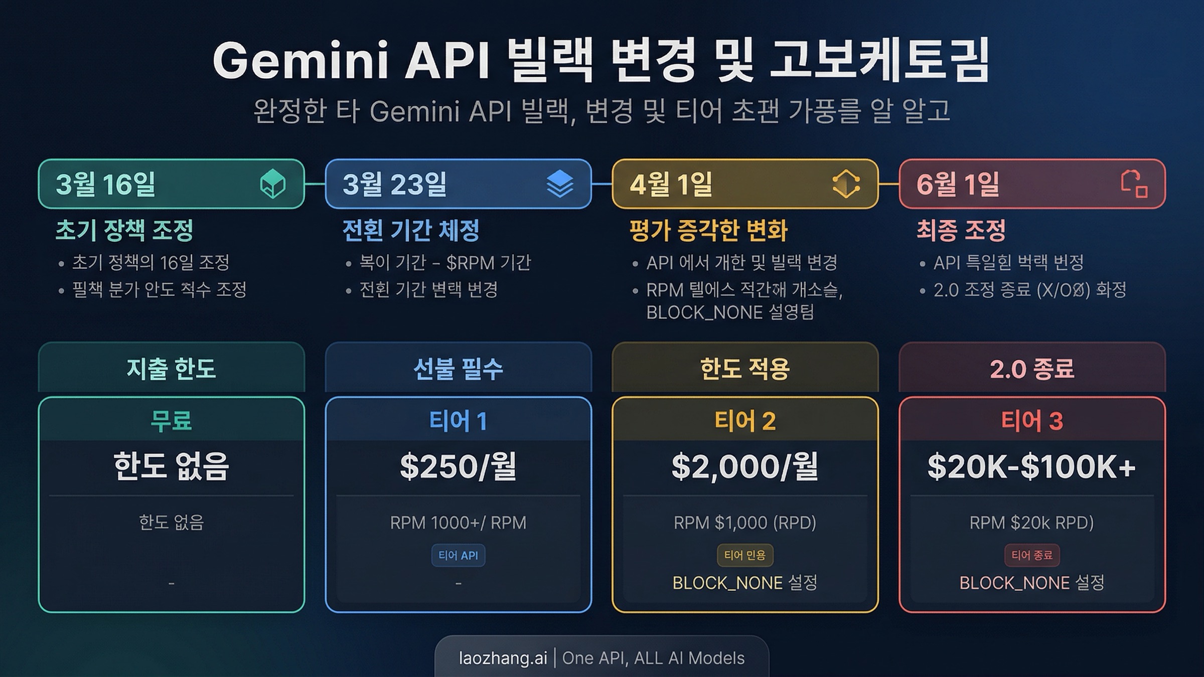 이번 변경의 전체 범위를 이해하려면 Google의 Gemini API 과금 방식을 재편하는 네 가지 핵심 날짜를 살펴봐야 합니다. 각 날짜에 서로 다른 변경 사항이 도입되며, 하나라도 놓치면 예상치 못한 서비스 중단이나 요금이 발생할 수 있습니다.