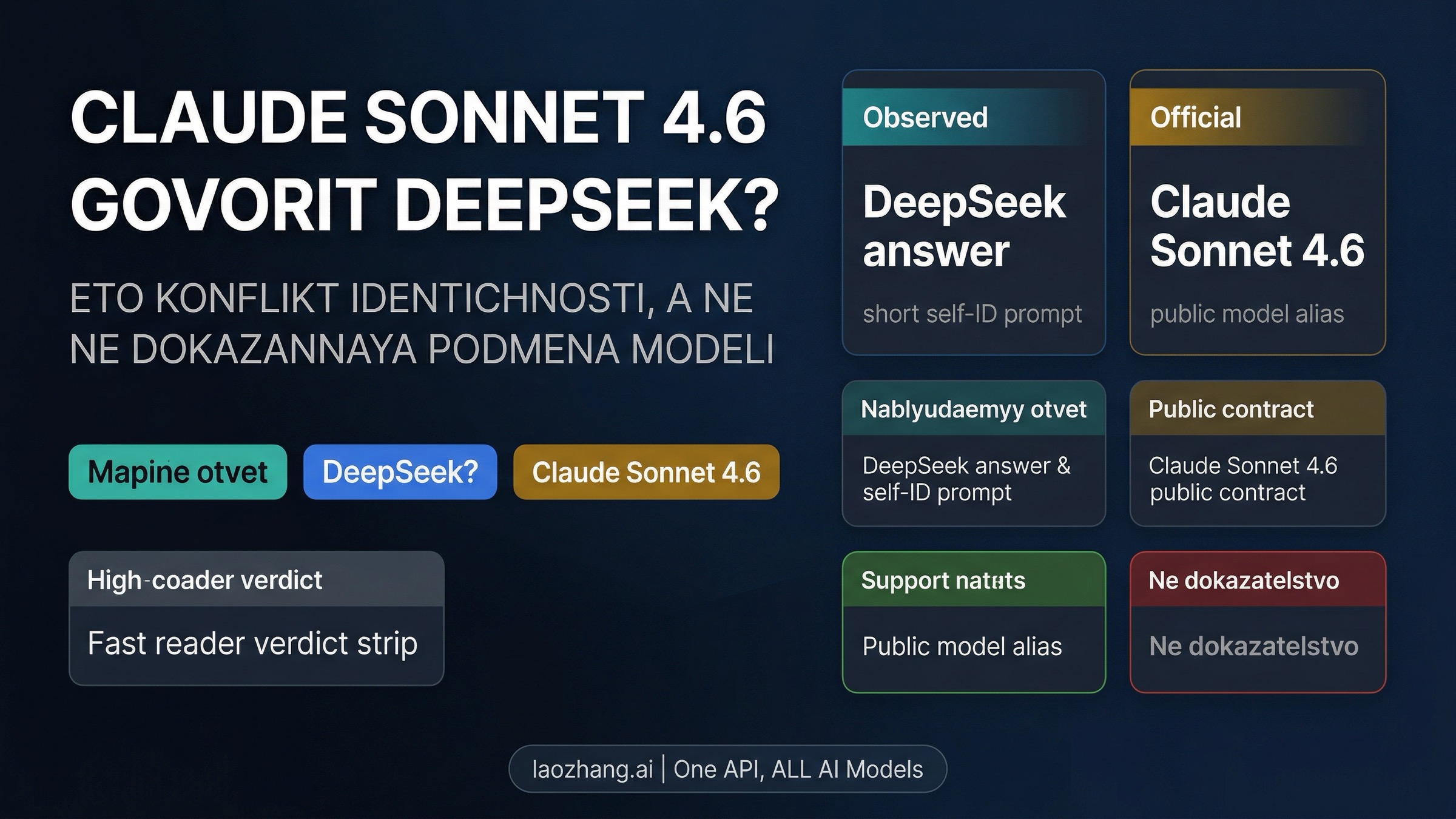 Claude Sonnet 4.6 в некоторых сценариях самоидентификации действительно может отвечать, что он DeepSeek, особенно когда prompt-оболочка слабо закрепляет его идентичность и вопрос задается в короткой форме на китайском. Самый полезный способ читать это поведение — видеть в нем сбой самоидентификации при слабом prompt boundary, а не готовое доказательство того, что Anthropic тайно подменила Sonnet на DeepSeek или что один скриншот уже закрывает вопрос о дистилляции.