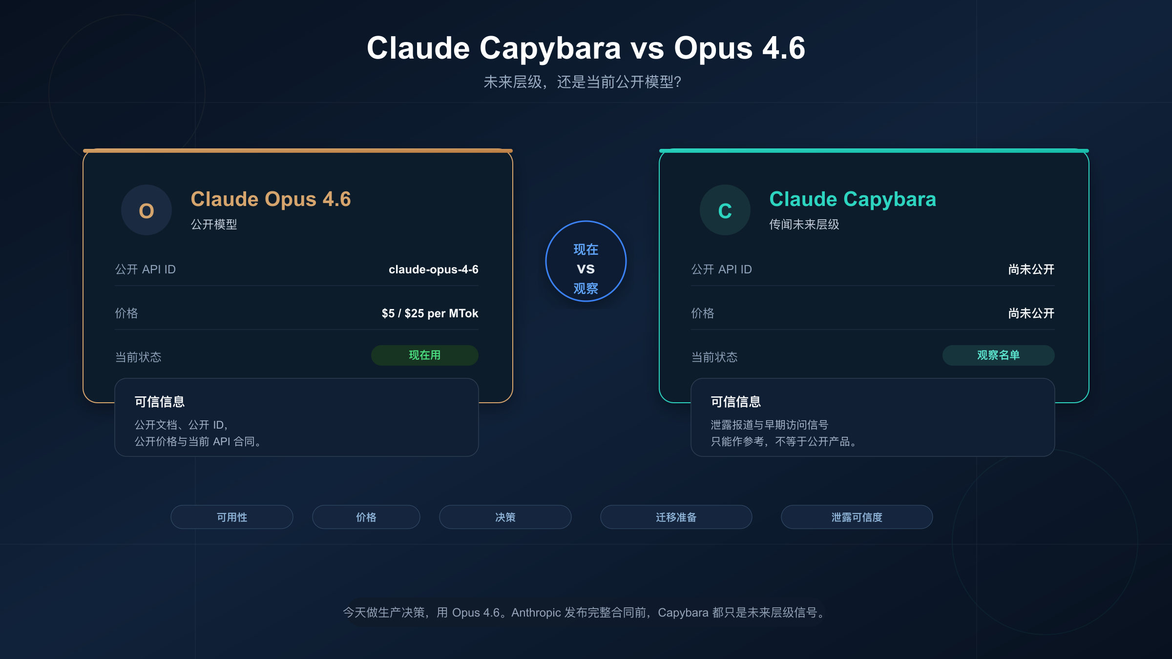 一个很实用的规则是:如果你问的是今天该部署、该买、该测什么,就选 Opus 4.6;如果你问的是未来 Anthropic 顶层路线图可能会不会改写你的判断,那就把 Capybara 放进观察名单。