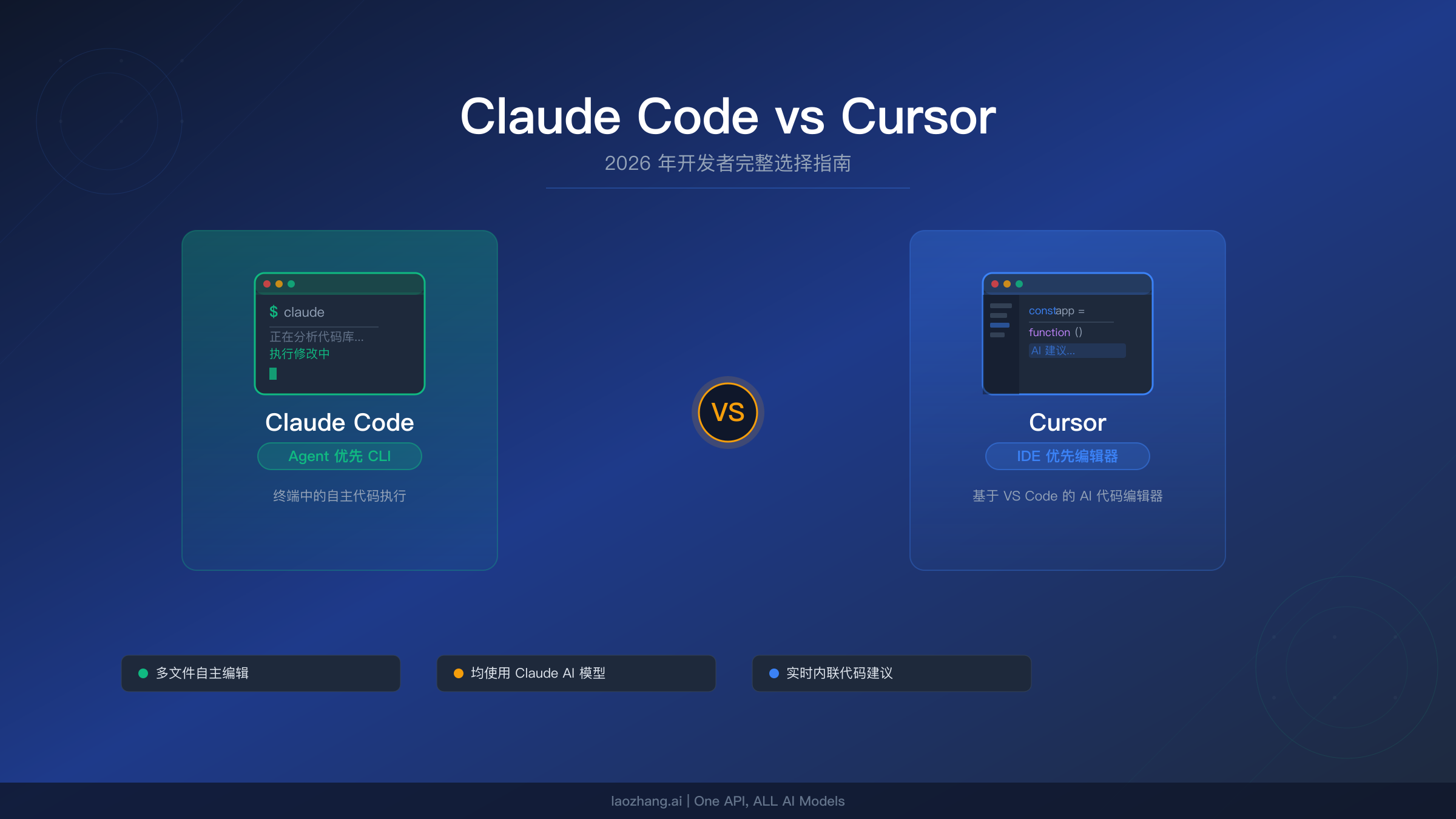 | 安装方式 | curl -fsSL https://claude.ai/install.sh | bash | 从 cursor.com 下载 |