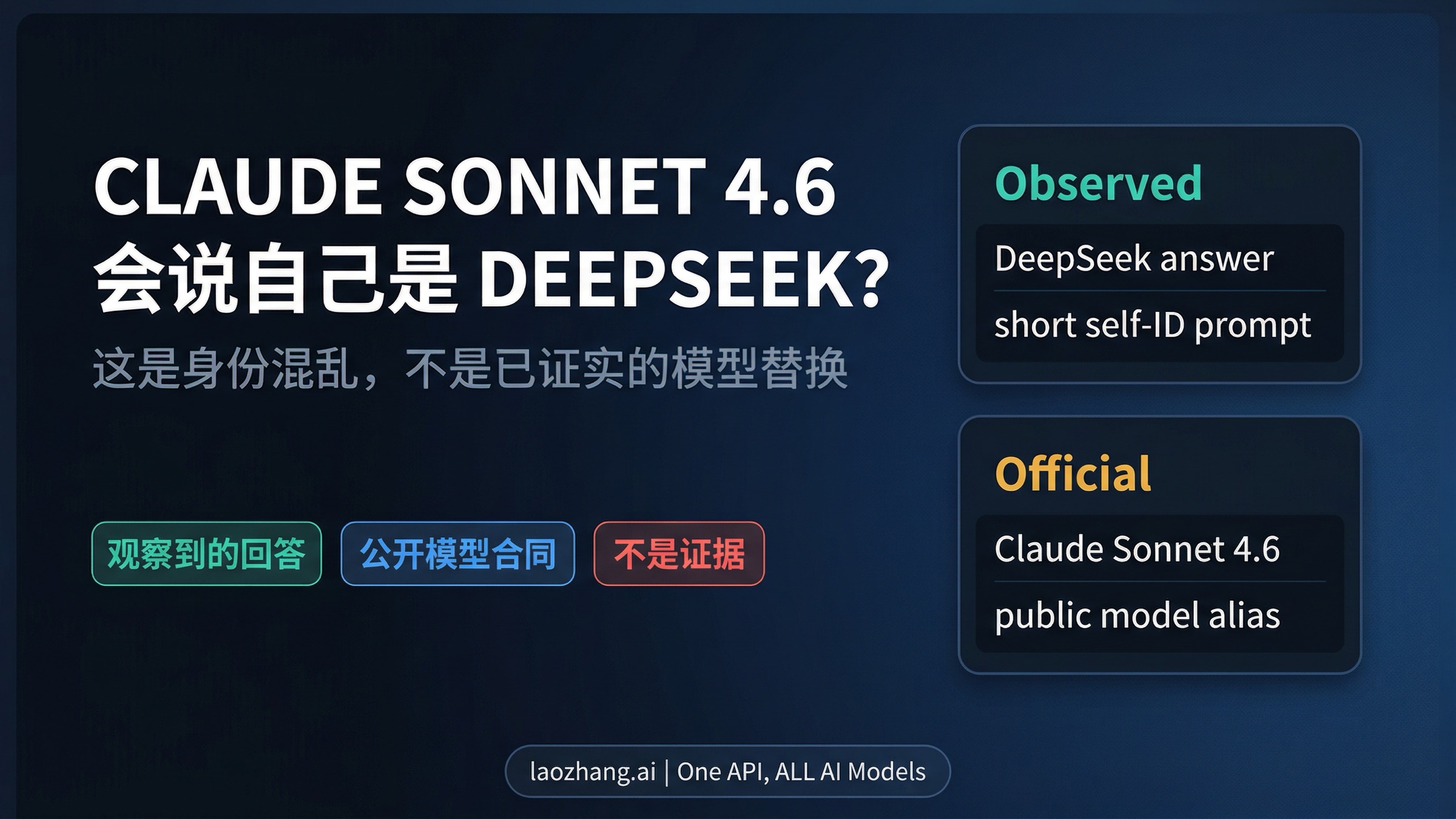 但另一个同样重要的事实是:截至 2026 年 4 月 1 日,Anthropic 没有公开发过一篇 help-center 文章或 release note 来解释这个 DeepSeek 自我识别现象。没有公开 bug note,没有公开修复说明,也没有公开根因分析。所以,最稳妥的写法不是“官方已承认某 bug”,而是“公开型号合同 + 观察到的行为 + 明确标注为推断的解释”。