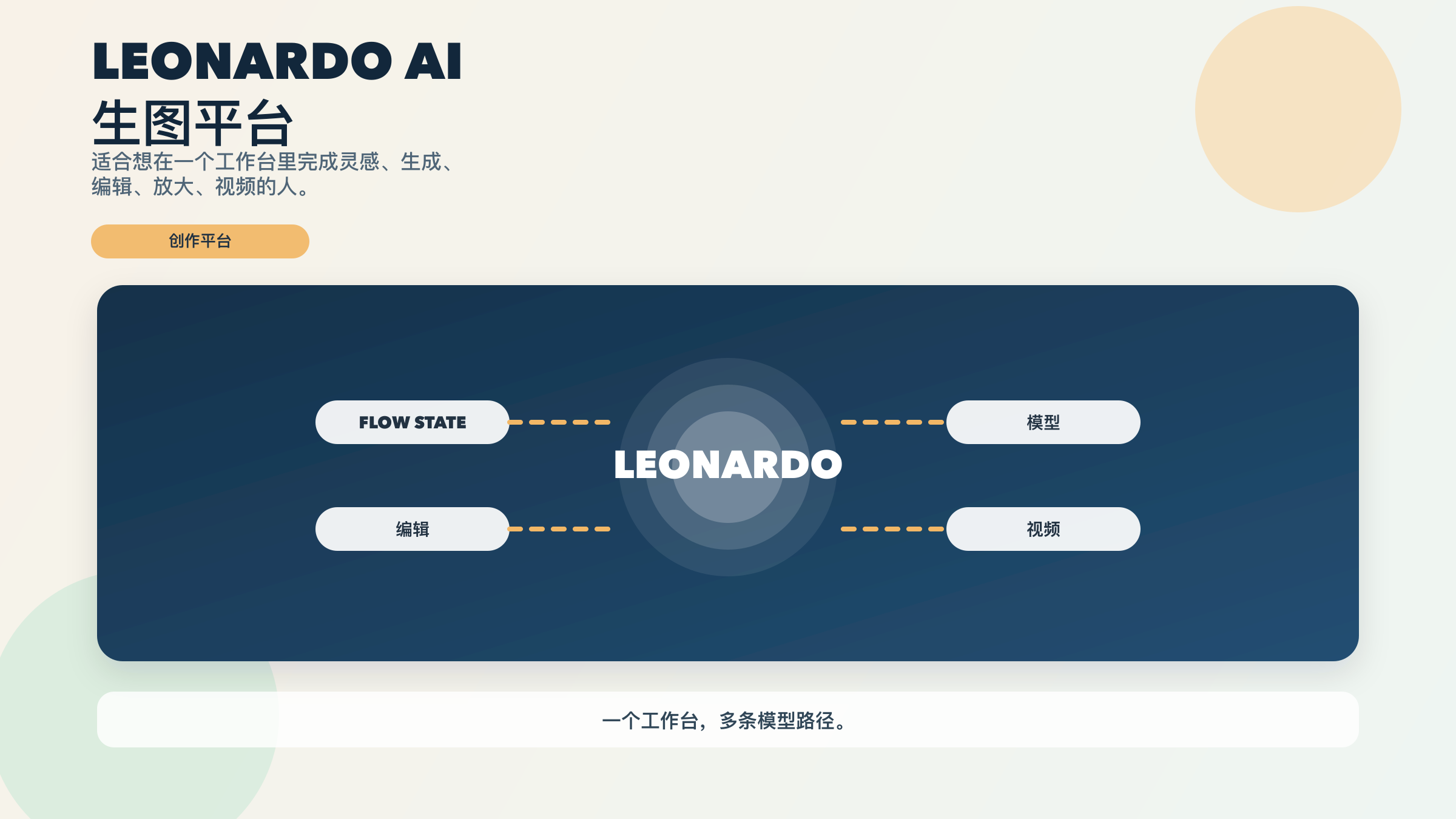 Leonardo 当前自己的 Getting Started 教程写得很清楚:平台里不只是 image generation,还包括 image editing、image upscaling、video generation 和 video editing。它的模型文档也说明了为什么这个判断重要。现在 Leonardo 平台里既有自家模型,比如 Lucid Origin、Lucid Realism、Phoenix,也有三方模型,比如 FLUX、Nano Banana、Nano Banana Pro、GPT Image-1.5 等。